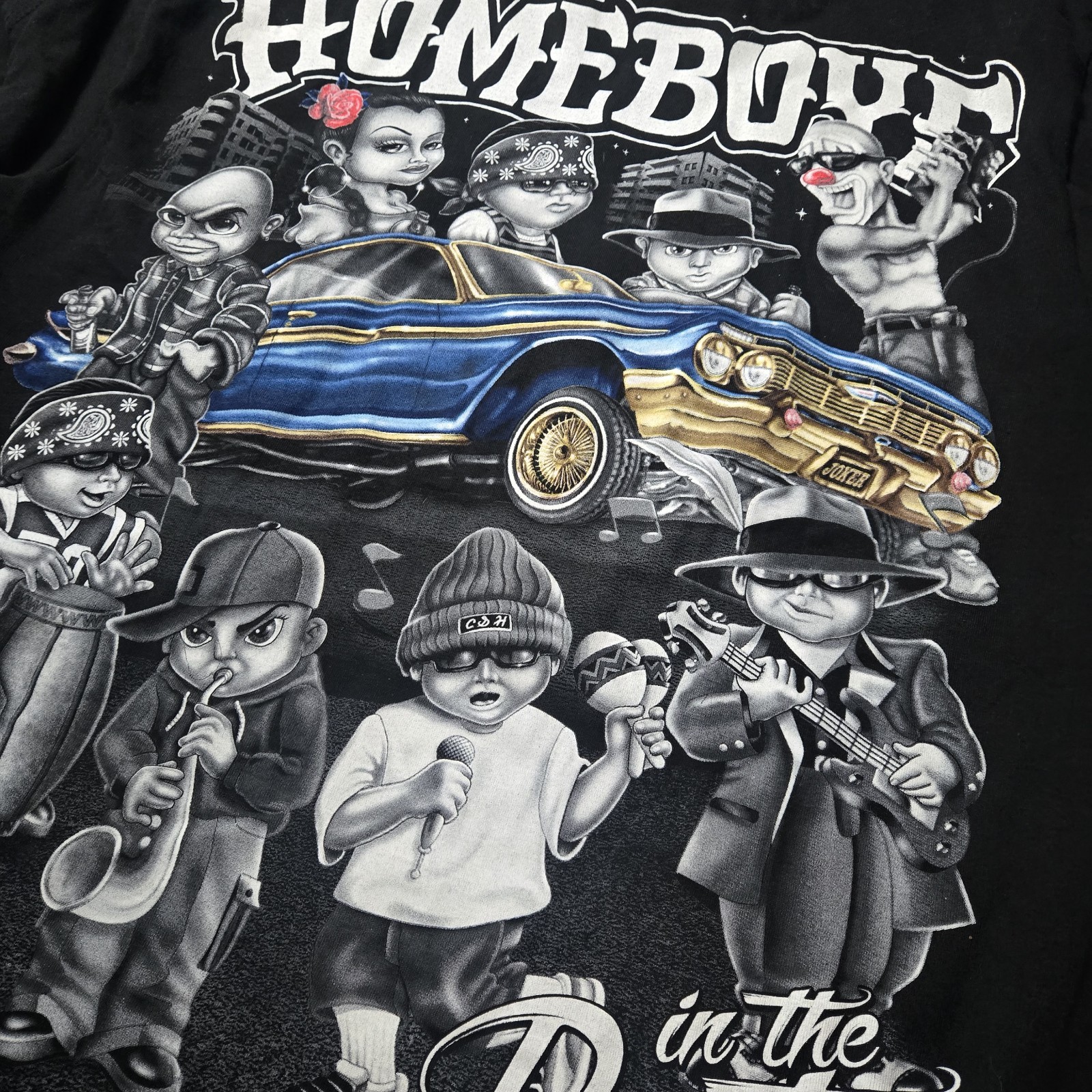 HOMEBOYS GANGSTER BAND IN THE PARTY LOWRIDER CAR MUSIC T-SHIRT XL