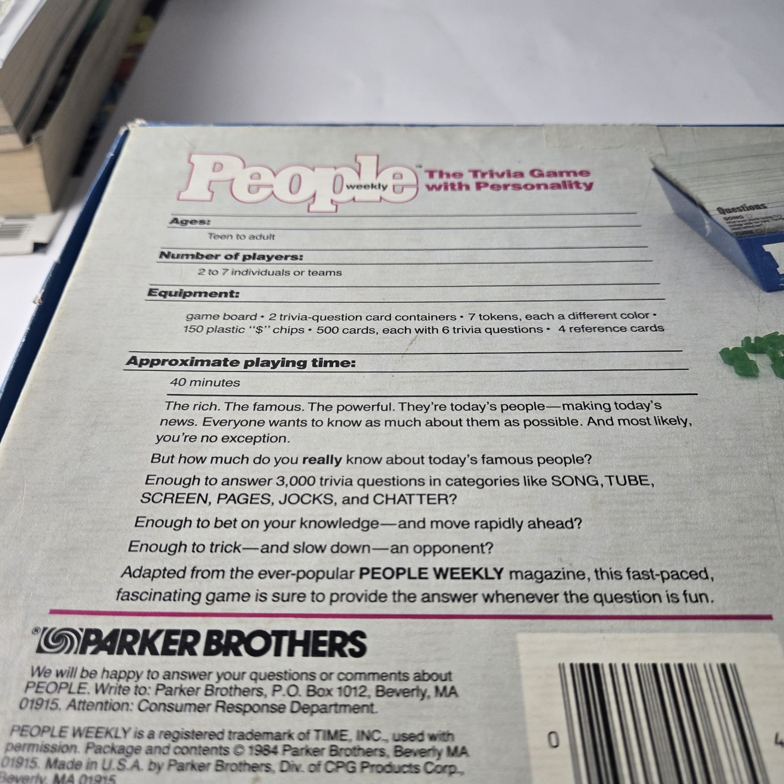 People Weekly Trivia Game – Vtg. Party Game – Parker Brothers – 1984 – Complete