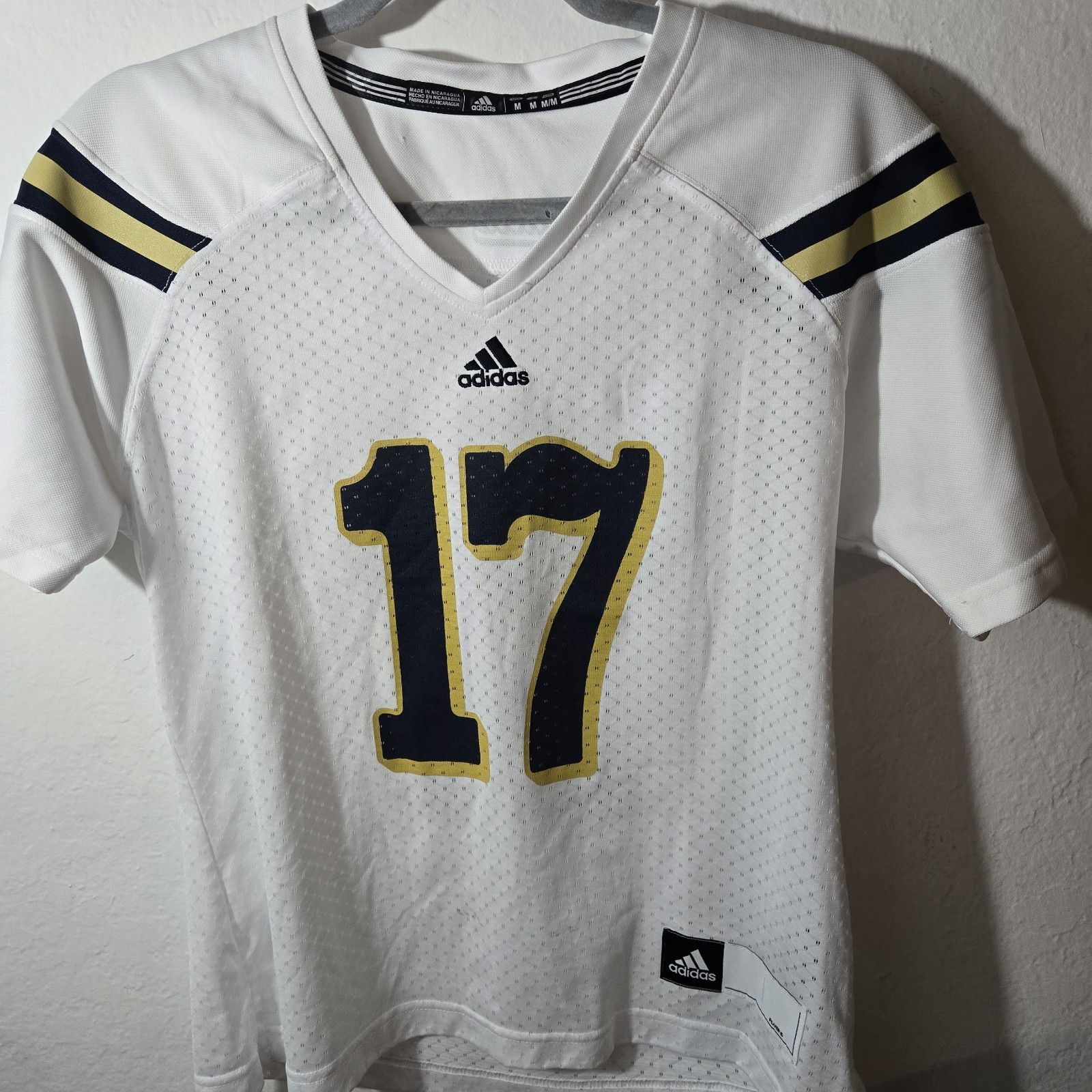 This product is a UCLA Adidas Women’s Medium white NCAA Bruins college football jersey #17. The jersey is officially licensed by the NCAA and features the UCLA Bruins team logo. Made by Adidas, the jersey is designed for women in a size medium and is ideal for showing support during the playoffs. The white color of the jersey makes it a versatile piece that can be worn for both games and casual outings. Perfect for any UCLA football fan looking to represent their favorite team in style.